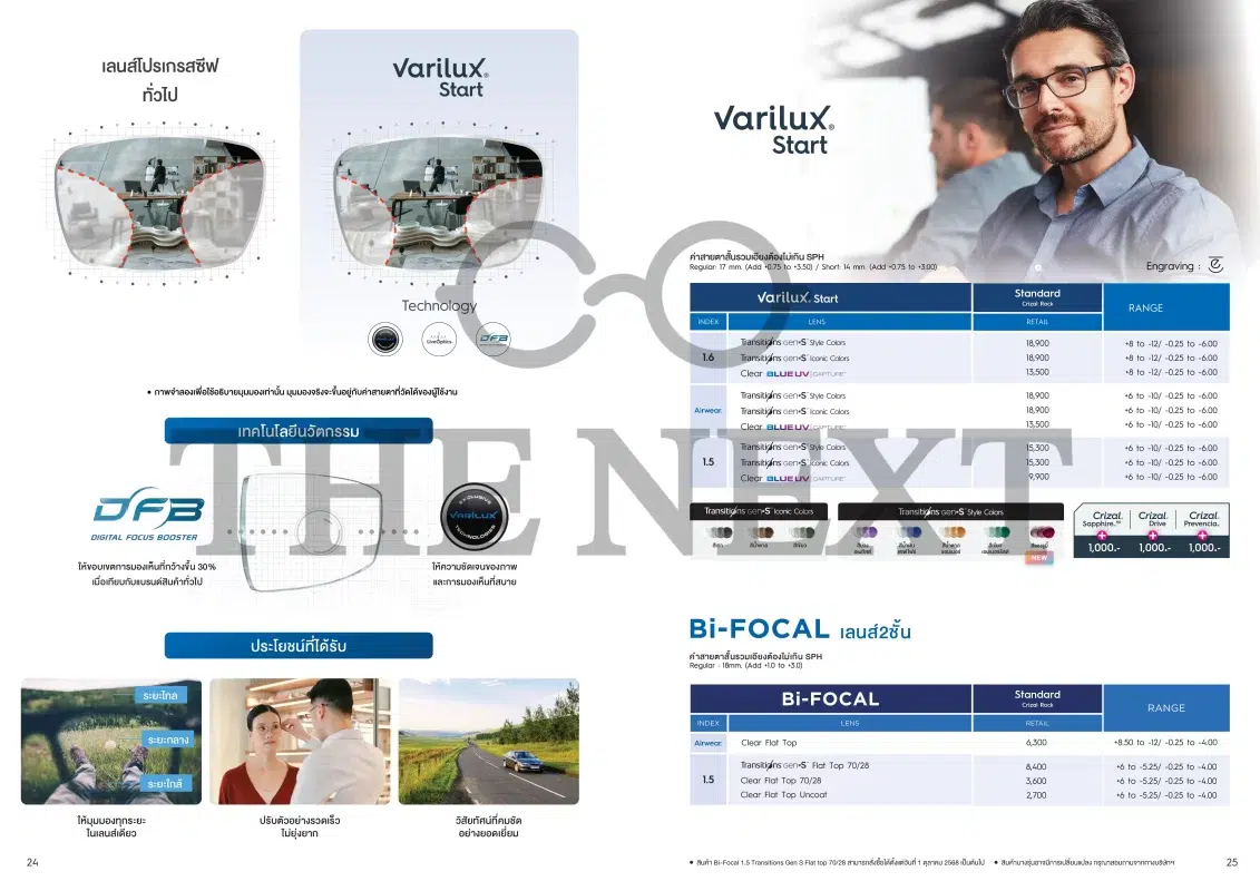 - เหมาะกับใคร: ผู้ที่มีอายุ 40 ปีขึ้นไป ที่ต้องการแว่นตาเพียงอันเดียวสำหรับทุกกิจกรรมในชีวิต ตั้งแต่การขับรถ, ทำงานหน้าจอคอมพิวเตอร์, ไปจนถึงการอ่านหนังสือ