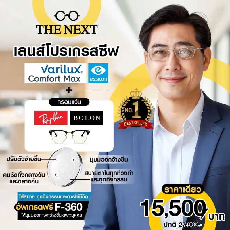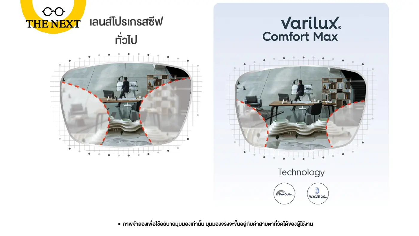 เลนส์โปรเกรสซีฟ Essilor Varilux Comfort Max เป็นเลนส์รุ่นกลางที่ให้ความสบายในการสวมใส่ตลอดวันและยังเหมาะกับมือใหม่ที่เพิ่งเคยใช้เลนส์โปรเกรสซีฟเพราะถูกออกแบบมาให้ปรับตัวได้ง่าย มีเทคโนโลยีที่ทันสมัยอย่าง Flex Optim™มองมุมกว้างได้มากขึ้นถึง 46% รองรับท่วงท่าการมองเห็นได้ถึง 227 ท่า รวมกับ W.A.V.E. 2.0™เทคโนโลยีเฉพาะแบรนด์ Essilor ช่วยลดภาพบิดเบือน จึงเหมาะกับผู้ที่ไม่เคยสวมใส่เลนส์โปรเกรสซีฟมาก่อน ส่วนเรื่องราคาถือว่าเป็นการลงทุนที่คุ้มค่า เพราะ Varilux Comfort Maxทำให้ผู้ที่มีปัญหาสายตายาวตามวัยใช้ชีวิตได้อย่างสะดวกสบายมากขึ้น ซึ่งที่ร้าน THE NEXT มีโปรโมชั่นพิเศษมากมาย สามารถเข้ามาตรวจวัดอย่างละเอียดและได้รับคำแนะนำที่ถูกต้องจากจักษุแพทย์ผู้เชี่ยวชาญได้ที่ร้าน THE NEXT ทุกสาขาบนห้างชั้นนำ(ดูสาขาเพิ่มเติม https://www.thenextoptical.com/stores )
