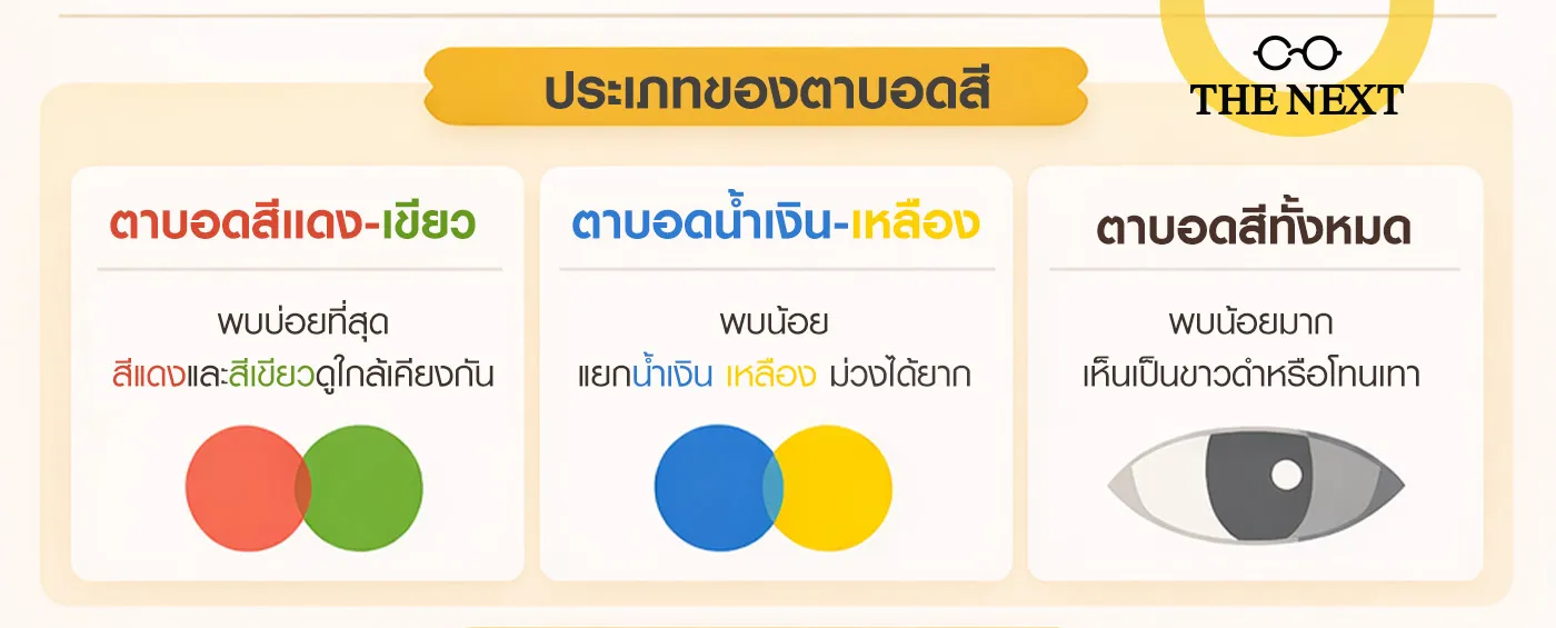 วันนี้ THE NEXT ขอรวบรวมทุกเรื่องเกี่ยวกับตาบอดสีแบบเข้าใจง่าย พร้อมสรุป “ความเชื่อผิด ๆ” ที่หลายคนเข้าใจคลาดเคลื่อน เพื่อให้คุณตรวจและดูแลตัวเองได้ถูกต้องที่สุดค่ะ