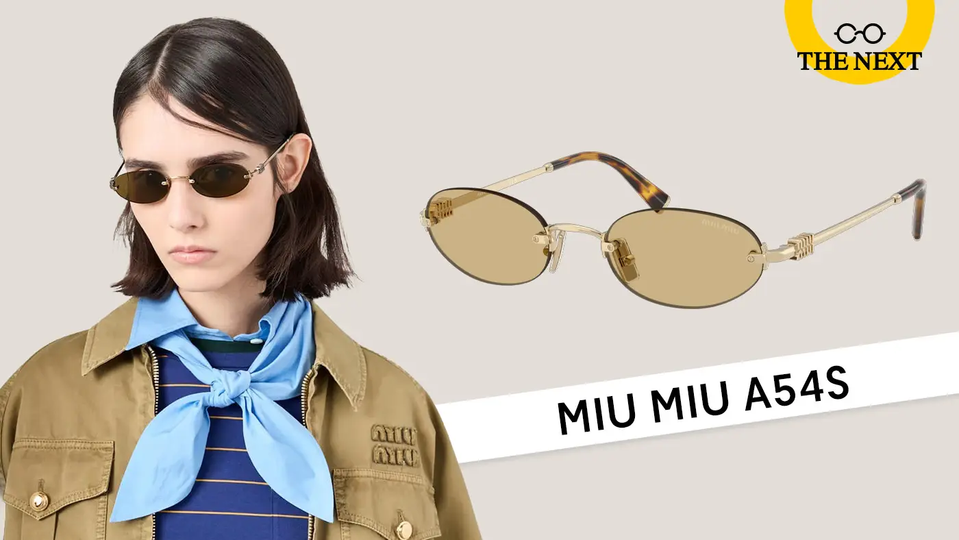 - Miu Miu A54S เป็นแว่นที่เป็นกระแสอย่างมาก ด้วยทรงรีไร้กรอบ ขาแว่นมีความคลาสสิคผสมหรูหรา แต่ยังสร้างความโดดเด่นให้ผู้สวมใส่ด้วยสีของเลนส์ สีชมพูและสีฟ้าแบบไล่เฉด