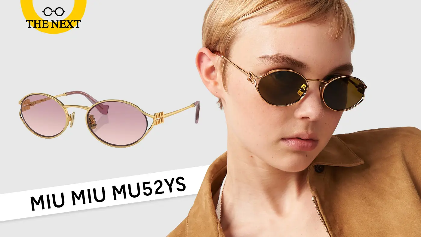 - Miu Miu MU52YS แว่นดีไซน์หรูหราด้วยกรอบสีเงินและสีทอง กรอบรูปทรงรี เป็นเส้นโครงเชื่อมติดกับโลโก้ Miu Miu แบบเป็นหนึ่งเดียว มีสีเลนส์ให้เลือกได้อย่างสนุกสนาน เช่น สีเขียวตัดกรอบสีเงิน สีชมพูตัดกรอบสีทอง