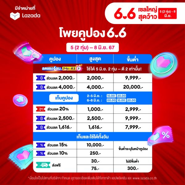เก็บโค้ดส่วนลดและใช้ได้ตั้งแต่วันที่ 6 มิถุนายน 2567 – 8 มิถุนายน 2567